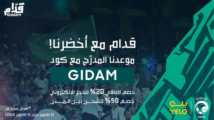 وتشمل العروض المقدمة من “يلو” خصماً بنسبة 20% عند الحجز الإلكتروني عبر الموقع الرسمي ( https://yelo.onelink.me/z7Tl/infGIDAM ) أو تطبيق “يلو”، بالإضافة إلى خصم مميز بنسبة 50% على خدمة الشحن بين المدن عند استخدام الكود الترويجي “GIDAM” وذلك حتى يوم ١٥ اكتوبر الجاري. وتستهدف هذه العروض تمكين أكبر عدد من المشجعين من الحضور وتشجيع المنتخب في أهم محطاته نحو تحقيق حلم التأهل العالمي.