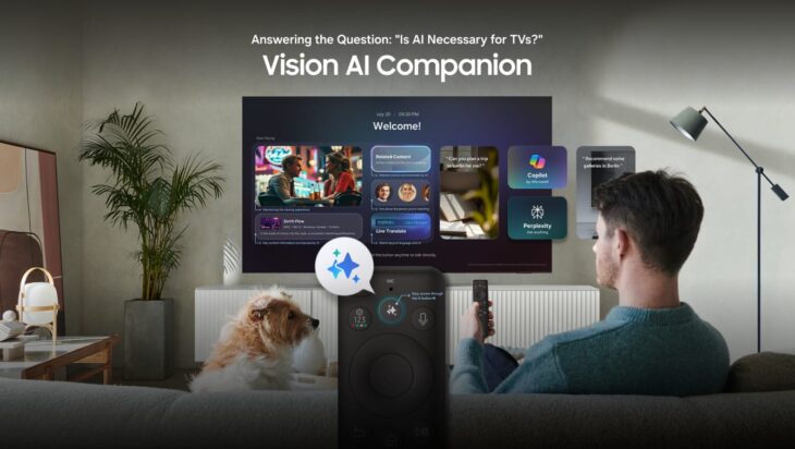 • منصة Vision AI Companion: يمثل هذا الابتكار تجربة تلفزيونية استثنائية تعيد صياغة طرق تفاعل المستخدمين مع المحتوى؛ فمن خلال زر مدعوم بالذكاء الاصطناعي التوليدي، يمكن للمستخدمين التفاعل مع المحتوى بأساليب مبتكرة، مثل الاستفسار عن مسار الأحداث أو الشخصيات، أو البحث عن المعلومات ذات الصلة، أو التحكم في التشغيل عبر الأوامر الصوتية. ومن خلال الاستغناء عن القوائم المعقدة وأجهزة التحكم عن بُعد، يتيح هذا المساعد الذكي للمستخدمين الاستمتاع بتجربة مشاهدة تلفزيونية سلسة وأكثر تفاعلية.